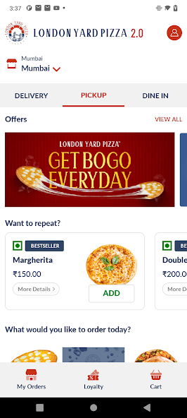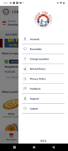 London Yard比薩應用程序用於食品和飲料訂購